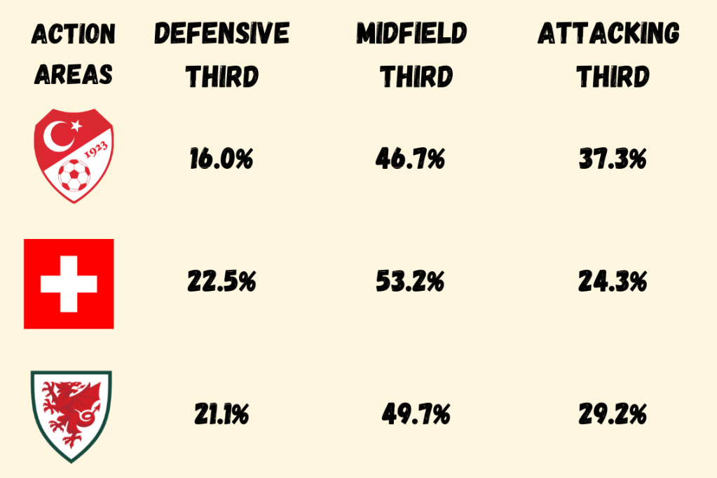 The most important theme implemented by Mancini is the side’s ability to adapt to the system regardless of the personnel on the pitch. This was perfectly demonstrated in the final group match against Wales with Verratti driving forward and launching attacks with penetrative passes, Pessina floating between the lines and Chiesa playing an integral role in attacks on the right wing. The aforementioned trio in many ways mirrored the roles played by Locatelli, Barella and Berardi in the victories over Turkey and Switzerland respectively.