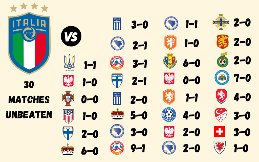 The Italians have been imperious – scoring seven goals and keeping three straight clean sheets in the process. Their form ahead of the tournament was impressive and they’ve further illustrated their brilliance by extending their unbeaten run to 30 matches across all competitions.